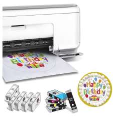 Have a whole new sort of fun with the Canon PIXMA PIXMA TS6120 / TS6220 All-In-One Wireless Inkjet Photo Printer. This item contains a brand new Canon PIXMA PIXMA TS6020 / TS6220 inkjet printer directly from Canon, a full set of Inkedibles refillable edible ink cartridges (1 each compatible Canon PGI-280 Black edible ink cartridge, CLI-281 black edible ink cartridge, CLI-281 cyan edible ink cartridge, CLI-281 magenta edible ink cartridge, CLI-281 yellow edible ink cartridge) and a set of cleaning cartridges (extra value $64.99). Inkedibles premium brand edible inks are FDA compliant, and the best quality inks for your cake and edible ink requirements, producing beautiful prints for cake decorators and bakeries alike, with stunning definition and colors. Print with Inkedible Inks for Incredible Cakes! Also included with the software are features such as the Auto Photo Fix, which corrects redeye and enhances your images. This is the perfect starter bundle for someone just getting into cake printing (for this low price, you get a brand new printer and a full set of FULL edible ink cartridges to get you started!). Or if you are a pro cake printer and decorator, this would be a nice new printer set to supplement your operation.