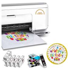 Have a whole new sort of fun with the Canon PIXMA PIXMA PIXMA TS6220 / TS8120 / TS8220 / TS8320 / TS9120 / TS9520 All-In-One Wireless Inkjet Photo Printer. This item contains a brand new Canon PIXMA PIXMA PIXMA TS6220 / TS8120 / TS8220 / TS8320 / TS9120 / TS9520 inkjet printer directly from Canon, a full set of Inkedibles refillable edible ink cartridges (1 each compatible Canon PGI-280 Black edible ink cartridge, CLI-281 black edible ink cartridge, CLI-281 cyan edible ink cartridge, CLI-281 magenta edible ink cartridge, CLI-281 yellow edible ink cartridge, CLI-281 photo blue edible ink cartridge) and a set of cleaning cartridges (extra value $64.99). Inkedibles premium brand edible inks are FDA compliant, and the best quality inks for your cake and edible ink requirements, producing beautiful prints for cake decorators and bakeries alike, with stunning definition and colors. Print with Inkedible Inks for Incredible Cakes! Also included with the software are features such as the Auto Photo Fix, which corrects redeye and enhances your images. This is the perfect starter bundle for someone just getting into cake printing (for this low price, you get a brand new printer and a full set of FULL edible ink cartridges to get you started!). Or if you are a pro cake printer and decorator, this would be a nice new printer set to supplement your operation.