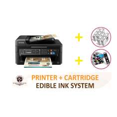 This item contains a brand new Epson WF-2630 inkjet printer directly from Epson, a full set of Inkedibles refillable edible ink cartridges (1 each compatible Epson T220XL120 Black edible ink cartridge, T220XL220 cyan edible ink cartridge, T220XL320 magenta edible ink cartridge, T220XL420 yellow edible ink cartridge) and a full set of cleaning cartridges (1 each Epson T220XL120 Black Inkedible cleaning cartridge, T220XL220 Cyan Inkedible cleaning cartridge, T220XL320 Magenta Inkedible cleaning cartridge, T220XL420 Yellow Inkedible cleaning cartridge). Inkedibles premium brand edible inks are FDA compliant, and the best quality inks for your cake and edible ink requirements, producing beautiful prints for cake decorators and bakeries. Print with Inkedible Inks for Incredible Cakes! Also included with the software are features such as the Auto Photo Fix, which corrects redeye and enhances your images. This is the perfect starter bundle for someone just getting into cake printing (for this low price, you get a brand new printer and a full set of FULL edible ink cartridges to get you started!). Or if you are a pro cake printer and decorator, this would be a nice new printer set to supplement your operation.