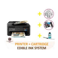 DELUXE PACKAGE 2: INKEDIBLES Epson WorkForce WF-2750 Wireless BUNDLED PRINTING SYSTEM - includes Printer With Complete Set of Edible Ink Cartridges, Cleaning Cartridges and Flush System