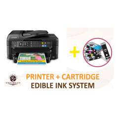 This item contains a brand new Epson WF-2760 inkjet printer directly from Epson and a full set of Inkedibles refillable edible ink cartridges (1 each compatible Epson T220XL120 Black edible ink cartridge, T220XL220 cyan edible ink cartridge, T220XL320 magenta edible ink cartridge, T220XL420 yellow edible ink cartridge). Inkedibles premium brand edible inks are FDA compliant, and the best quality inks for your cake and edible ink requirements, producing beautiful prints for cake decorators and bakeries. Print with Inkedible Inks for Incredible Cakes! Also included with the software are features such as the Auto Photo Fix, which corrects redeye and enhances your images. This is the perfect starter bundle for someone just getting into cake printing (for this low price, you get a brand new printer and a full set of FULL edible ink cartridges to get you started!). Or if you are a pro cake printer and decorator, this would be a nice new printer set to supplement your operation.
