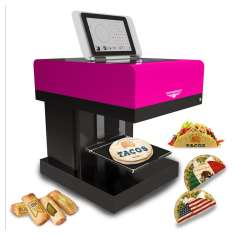 The TACO PRINTER™ is a revolutionary, easy to use, small batch custom DIRECT TO FOOD edible ink printer by InkEdibles. It comes with TACO INK™ (fryable edible ink). Yes, that means you can fry the edible ink image after you print it!