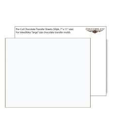 Unprinted (ready for print) Chocolate Transfer Sheets measuring 26.5cm x 12.4cm. Designed for use with our "Large Size" Magnetic Chocolate Molds and a variety of other Chocolate Molds and Bonbon Molds that are around 11" x 7" in size. Pack of 50 ready-for-print sheets included.